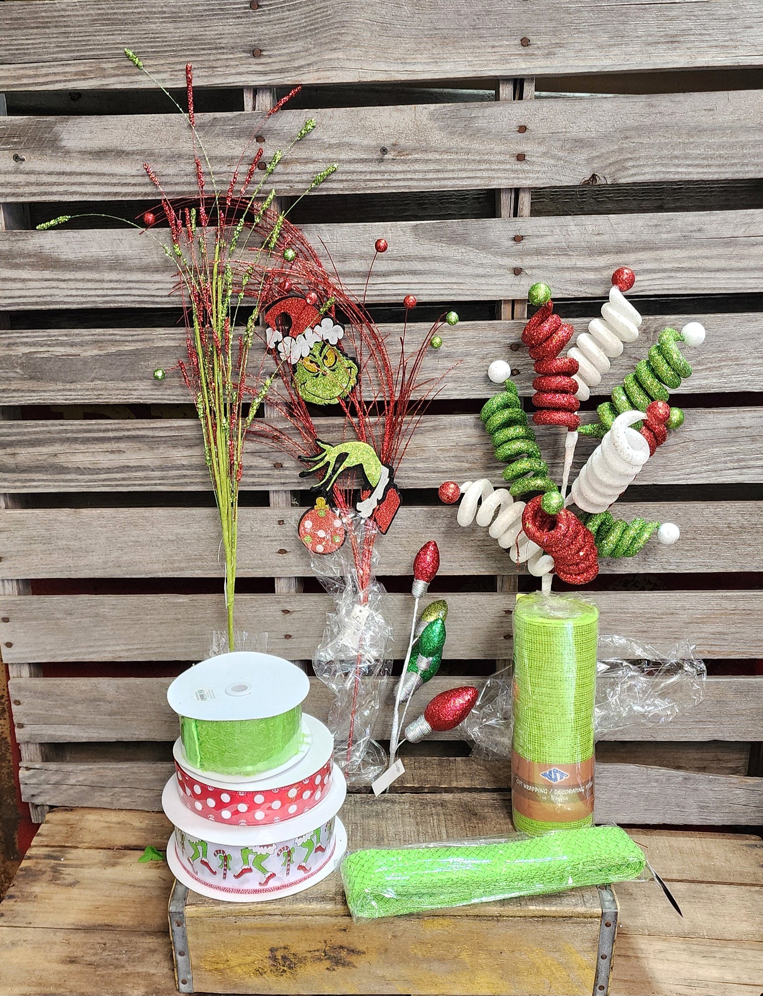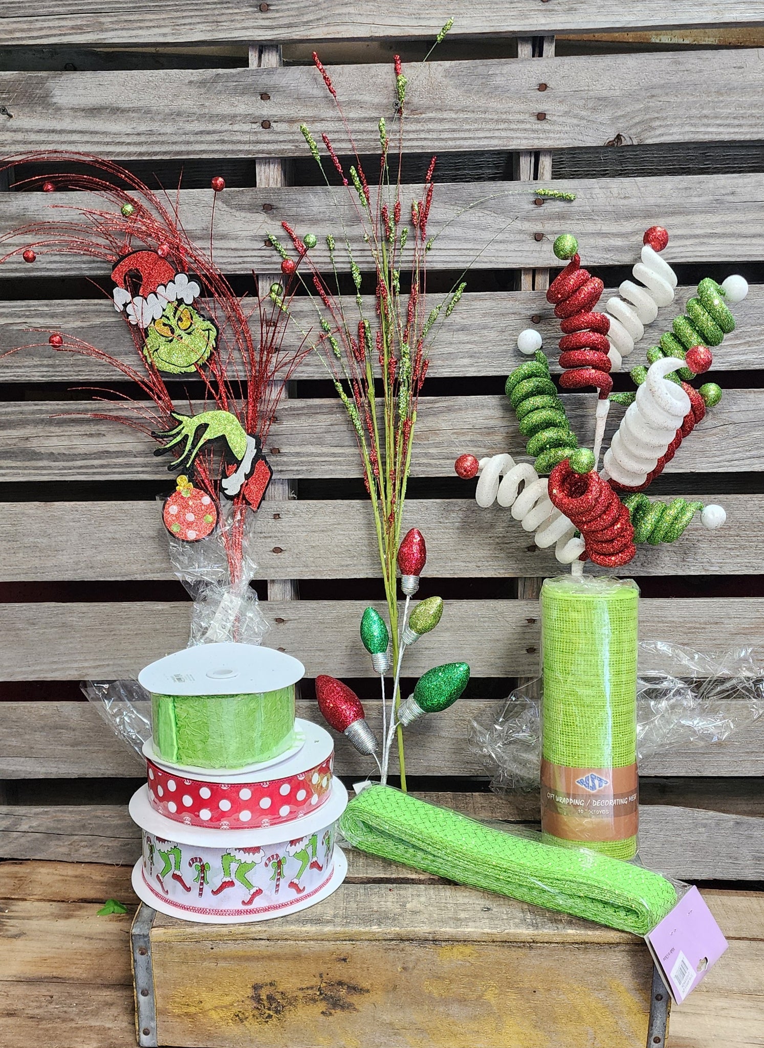 This set is a beautiful group of supplies for making a gorgeous green monster wreath for the holidays.