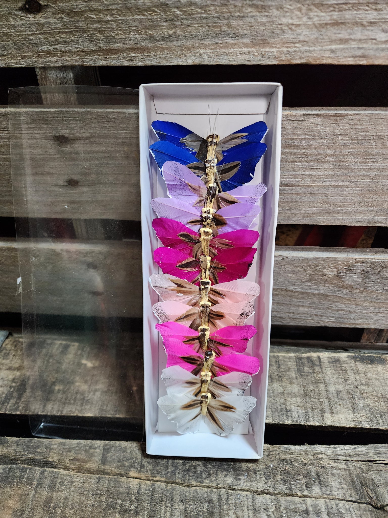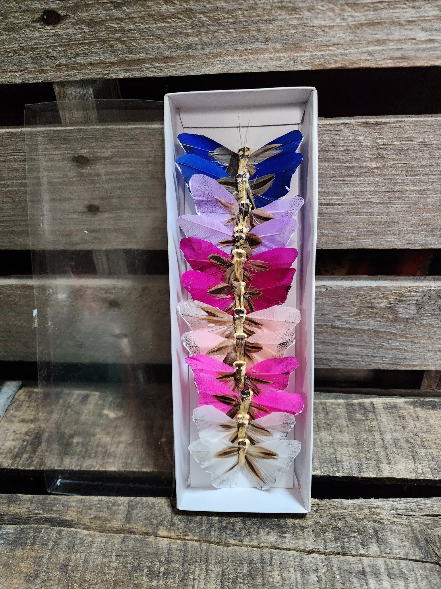 This is a beautiful faux butterfly and there are a dozen faux butterflies. These work great for arrangements, wreaths, home decor and so much more.