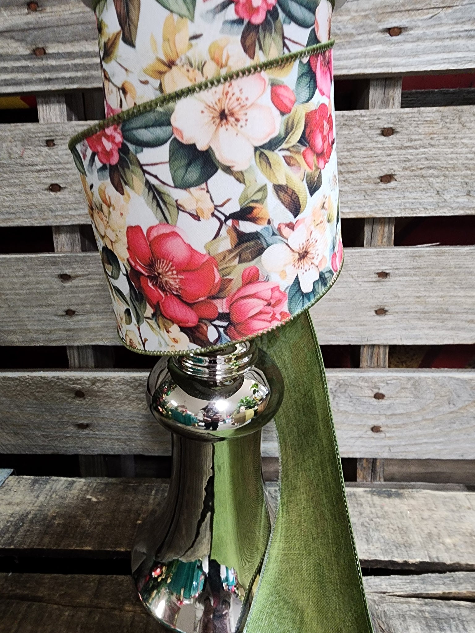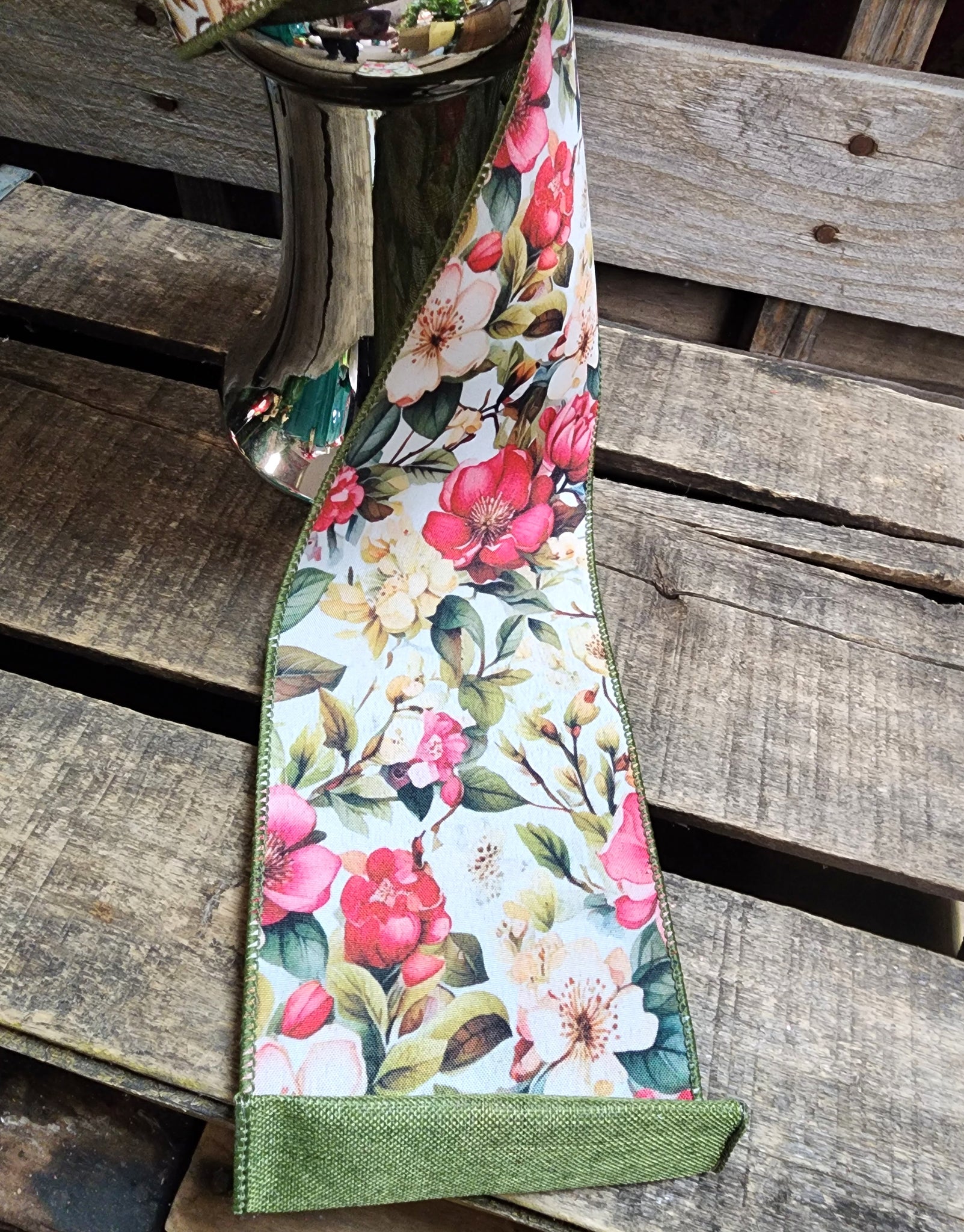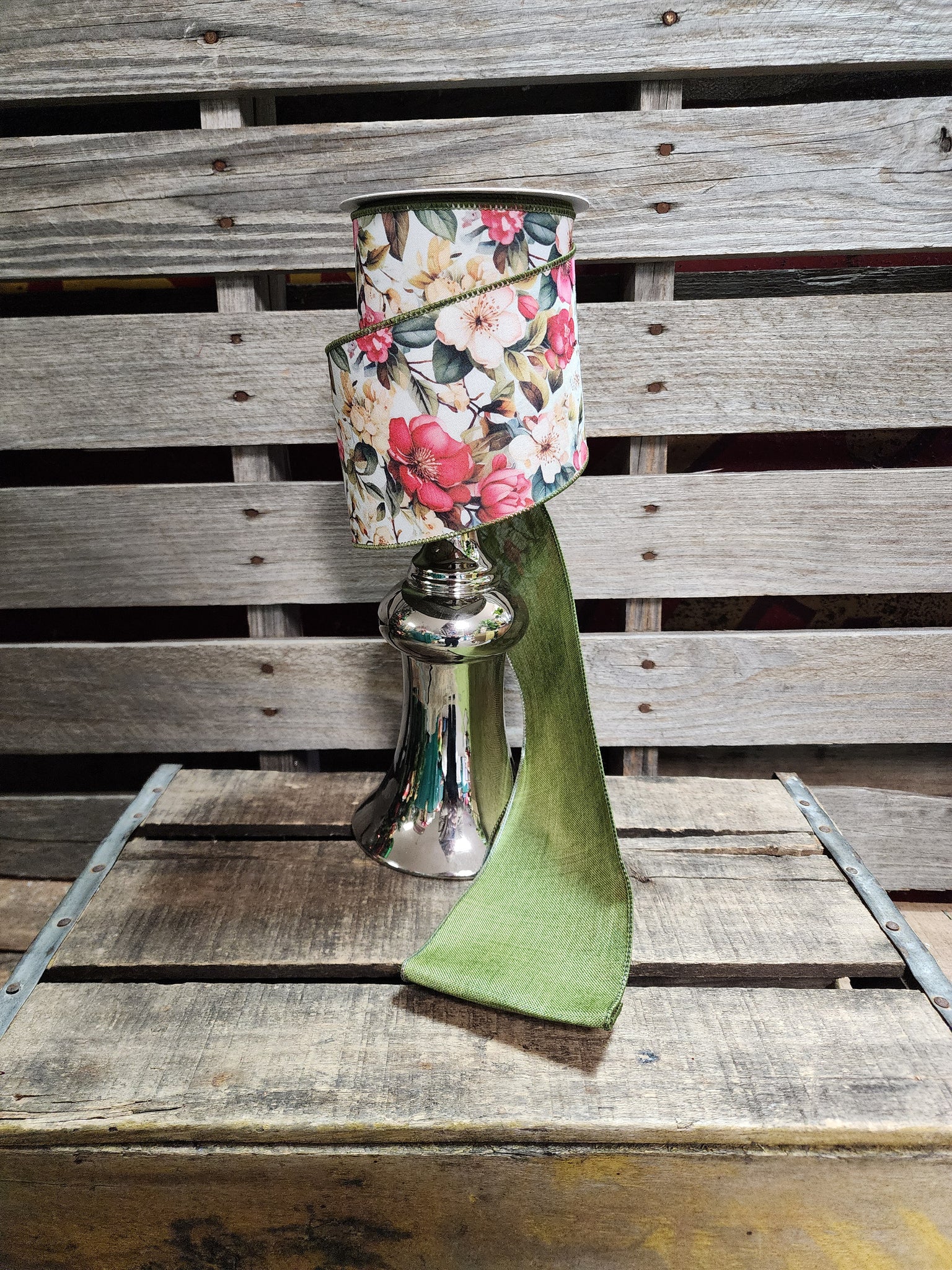 4" Wired Pink and Green Floral Ribbon 10Yd Roll