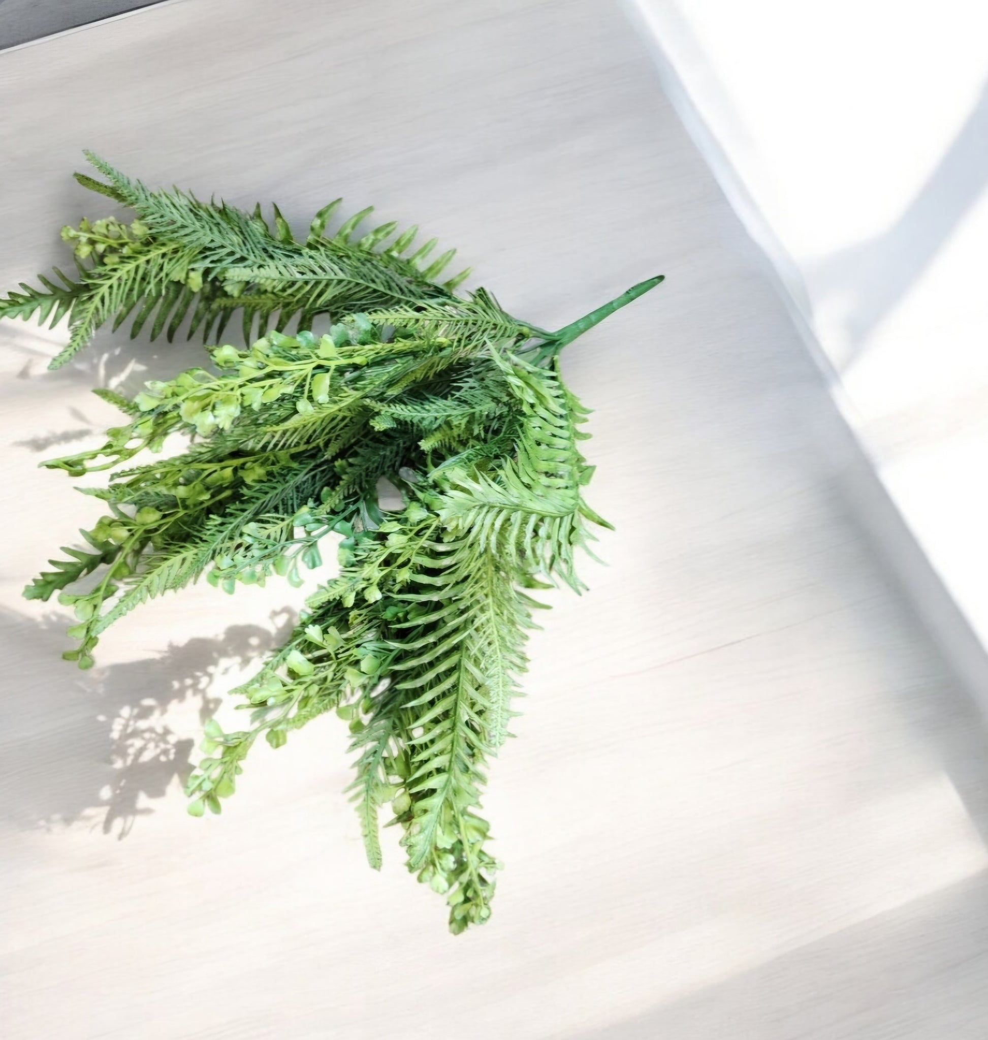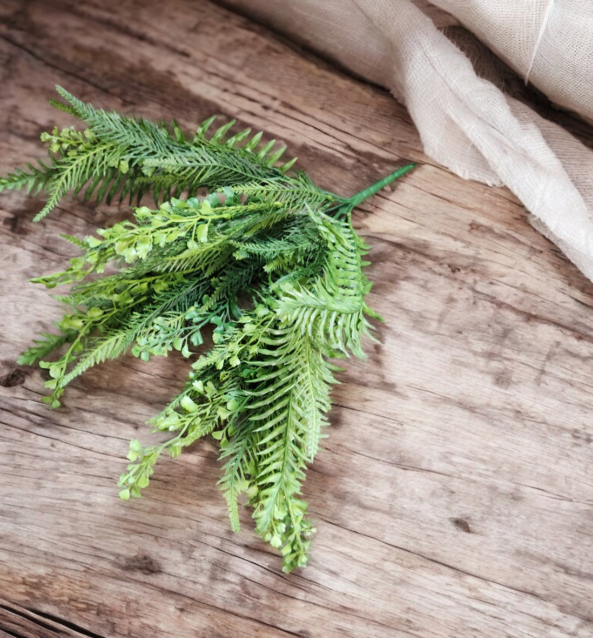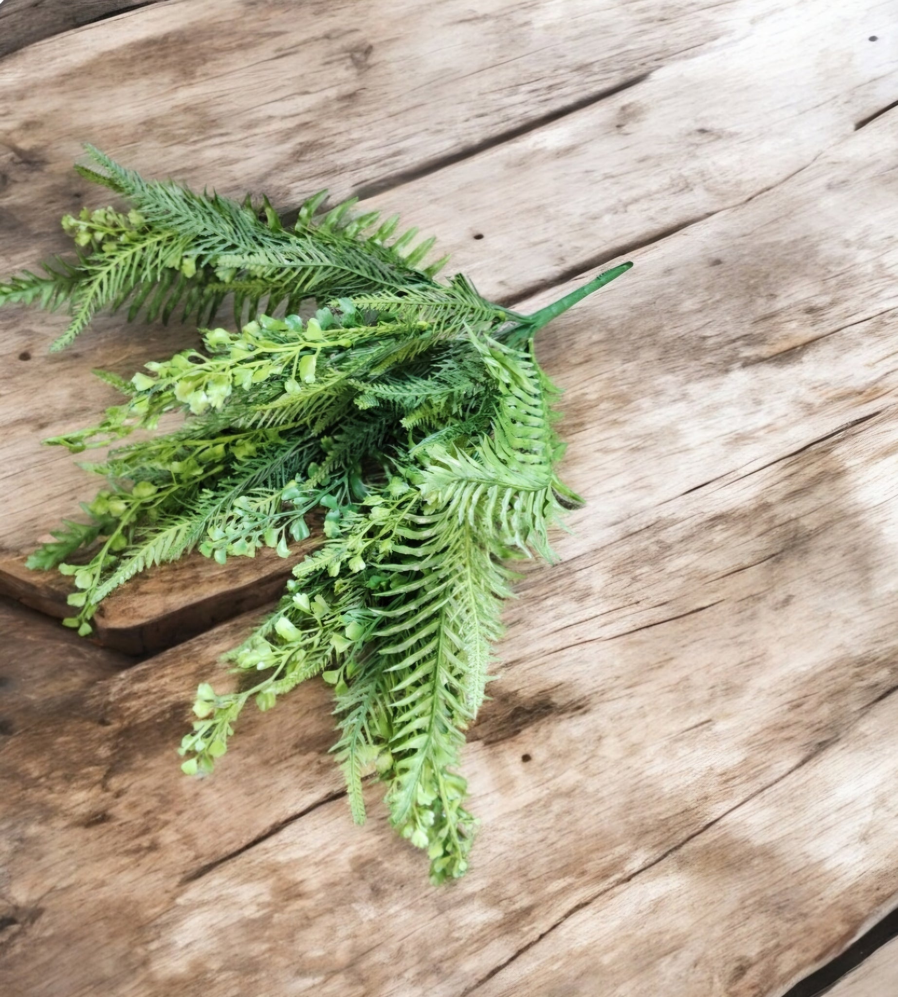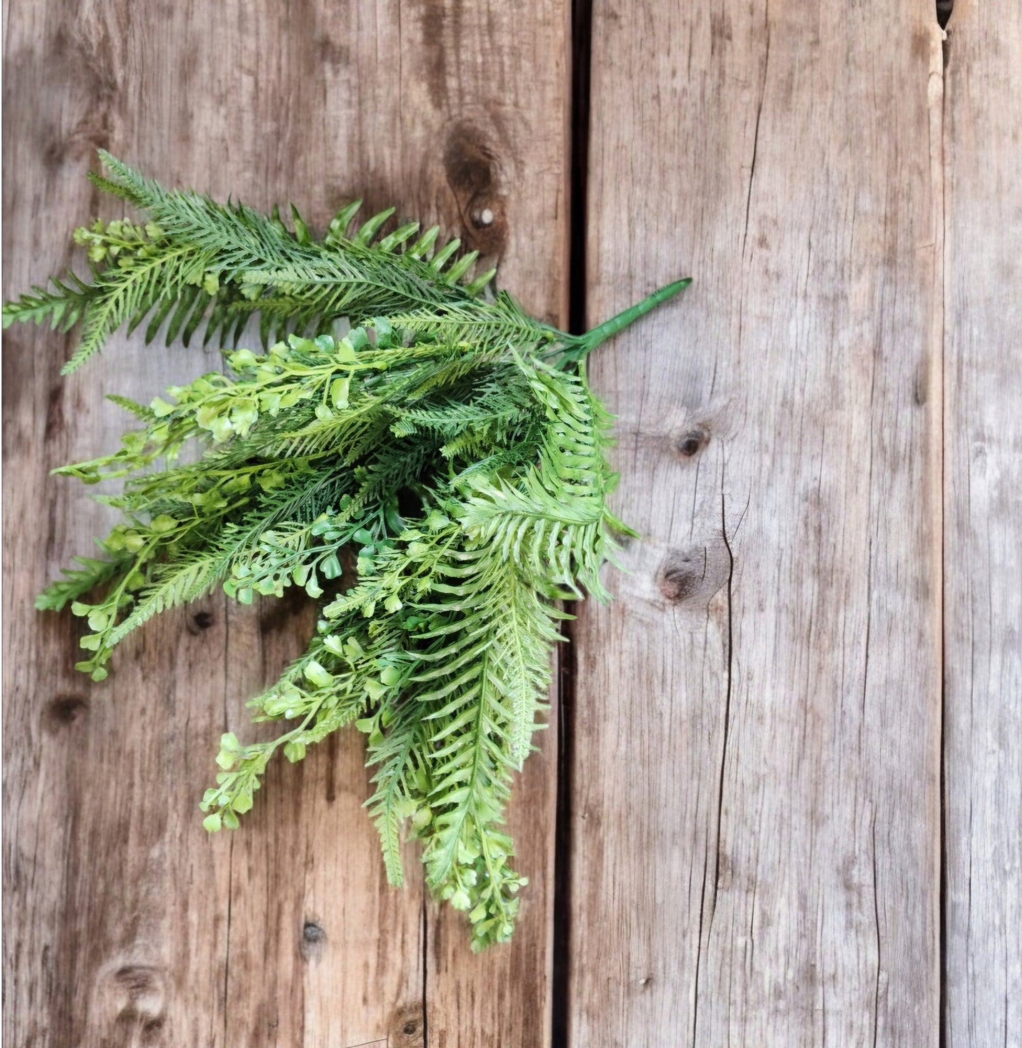 This is a plastic mixed fern bush works great for outdoor wreaths and decor.