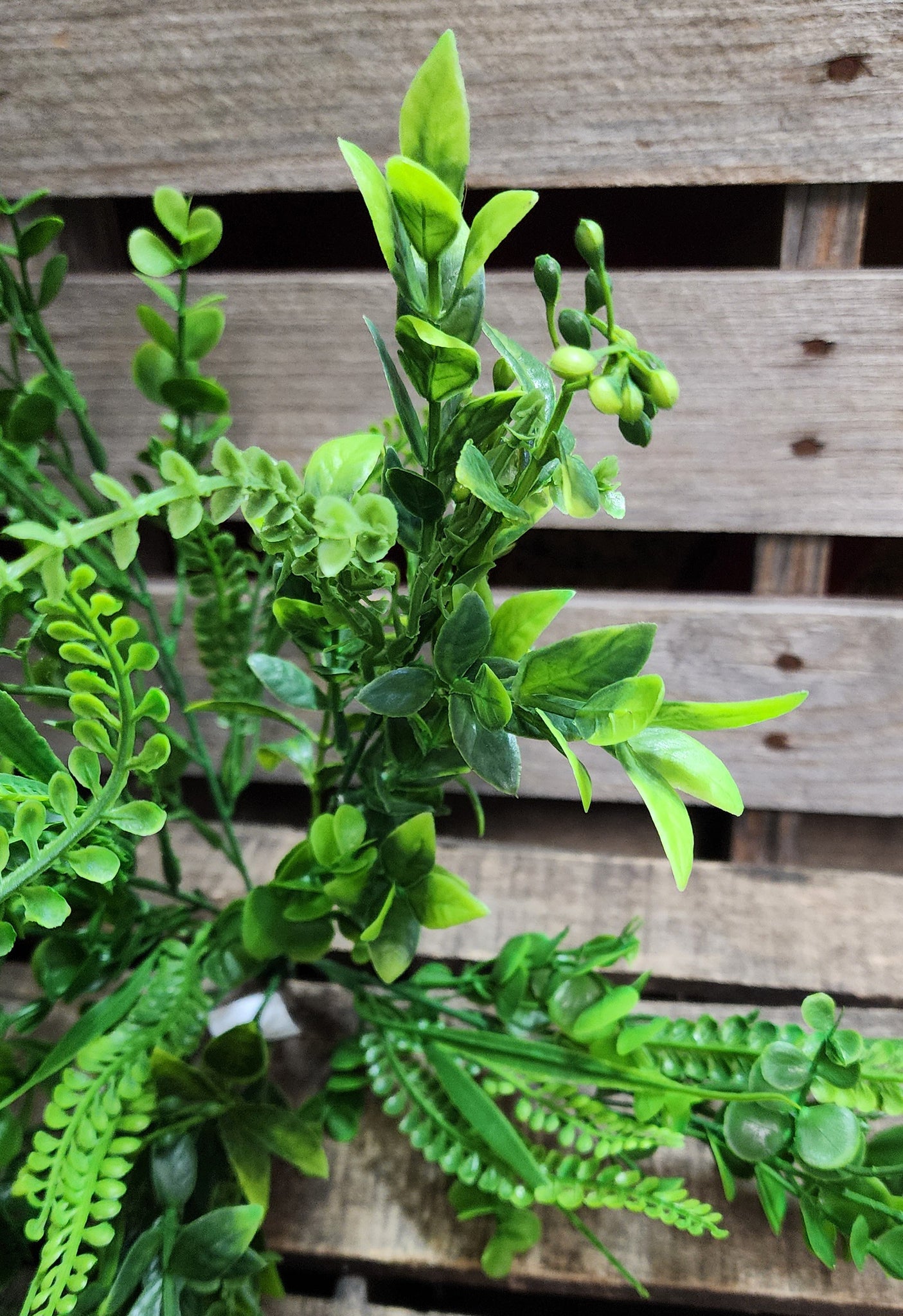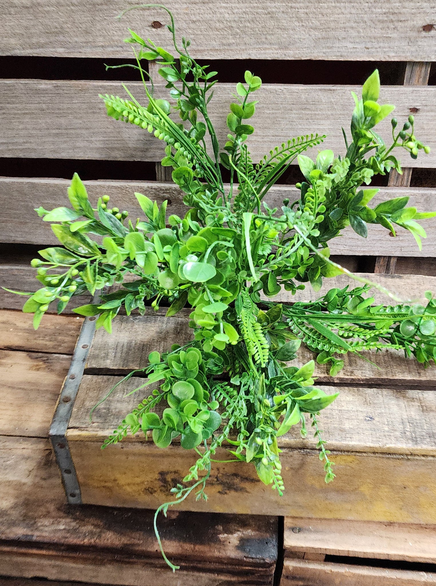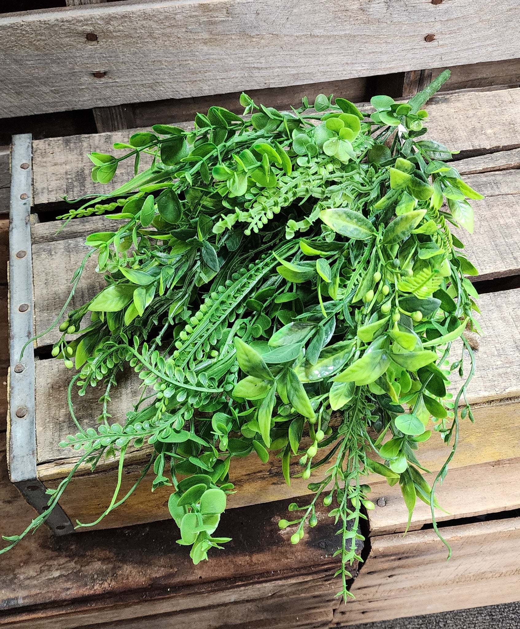 This is a 22" Plastic Mixed Greenery Bush  with 7 stems of Greenery. This Greenery is Mixed and works great for outdoors.