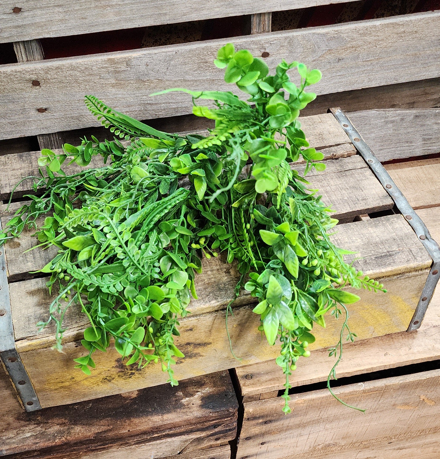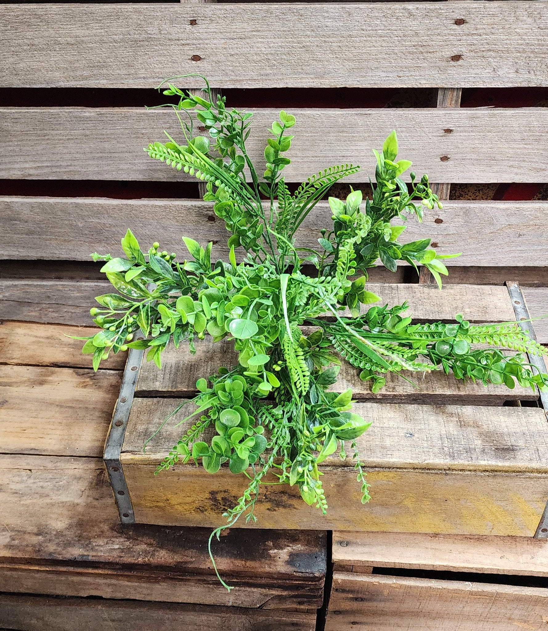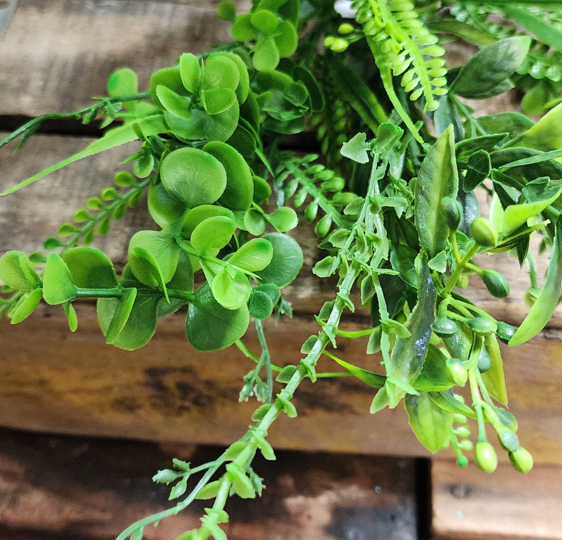 This is a 22" Plastic Mixed Greenery Bush  with 7 stems of Greenery. This Greenery is Mixed and works great for outdoors.