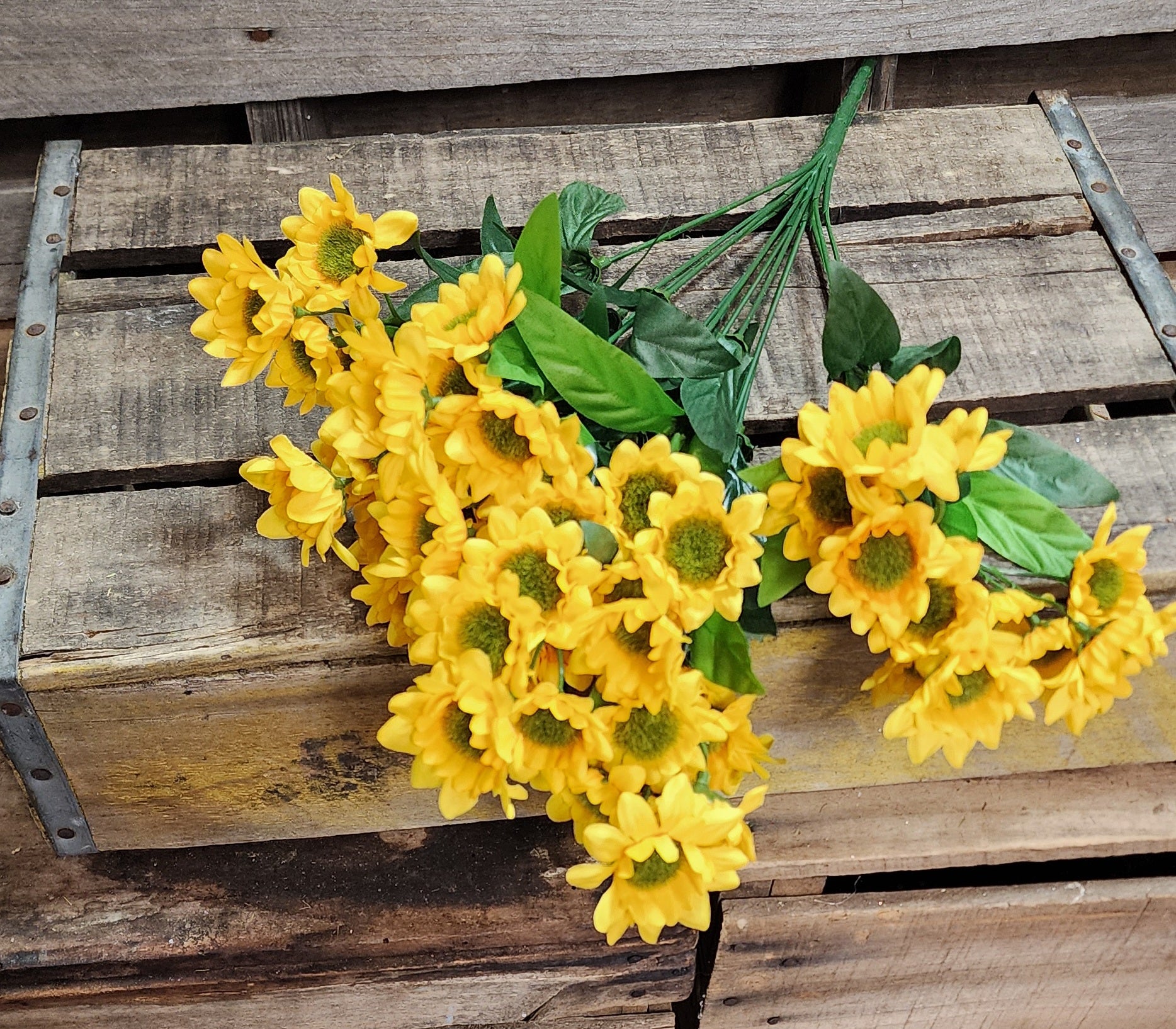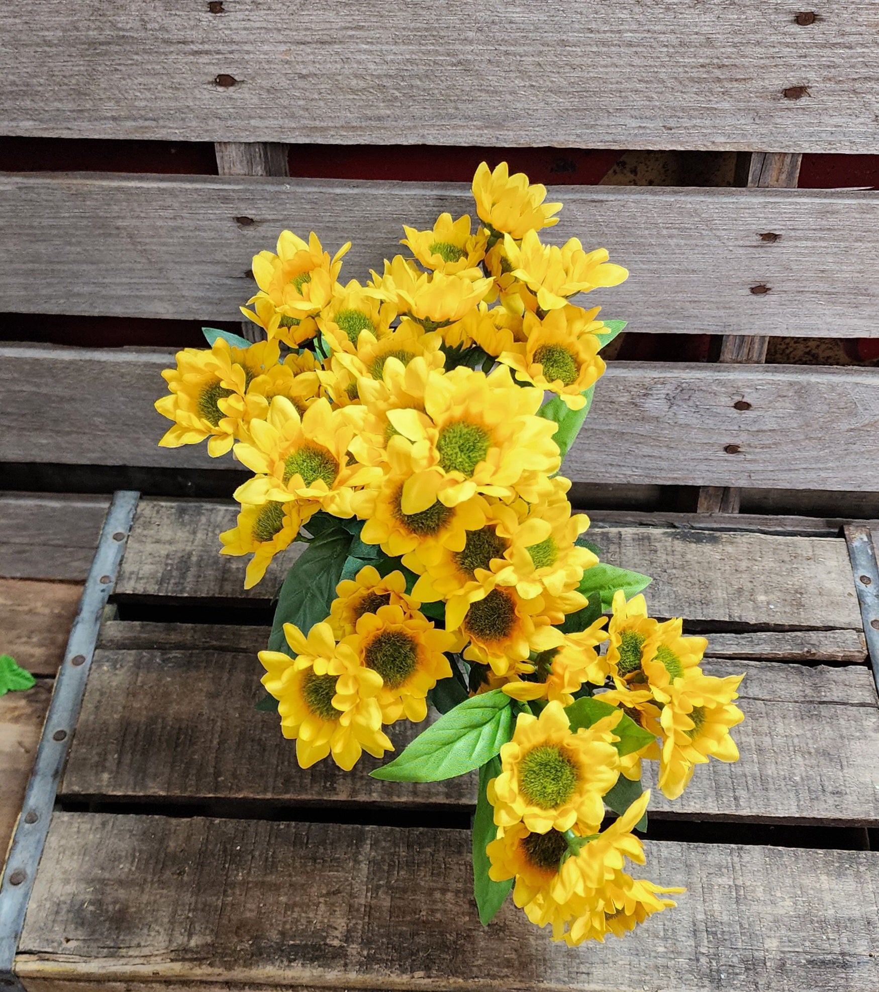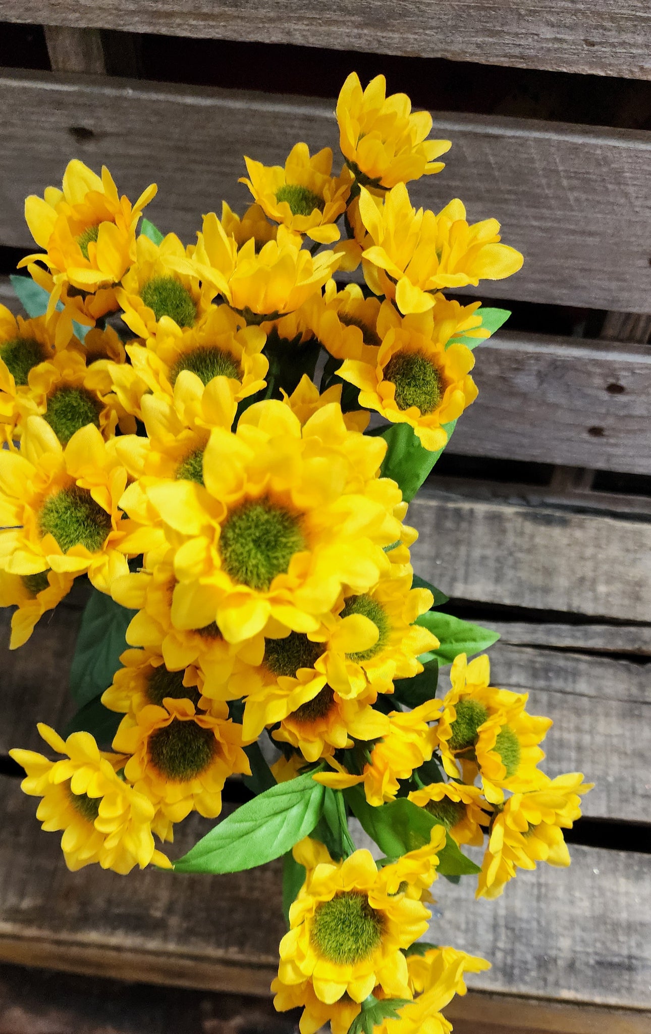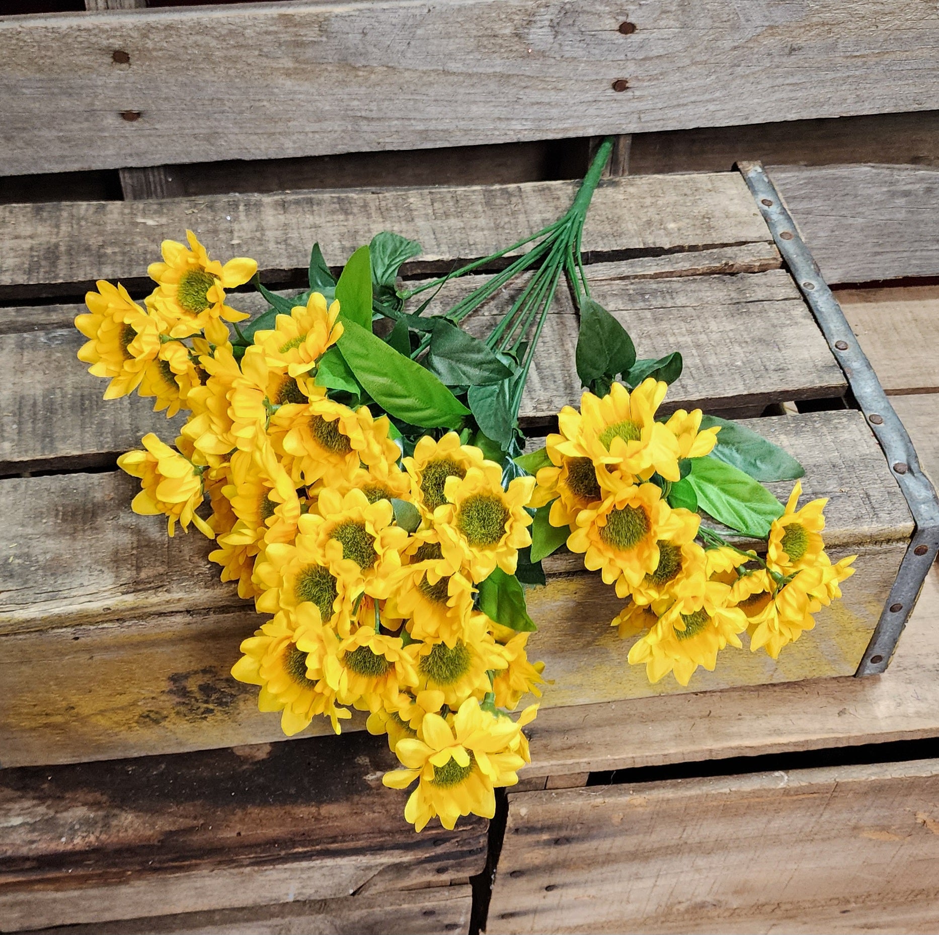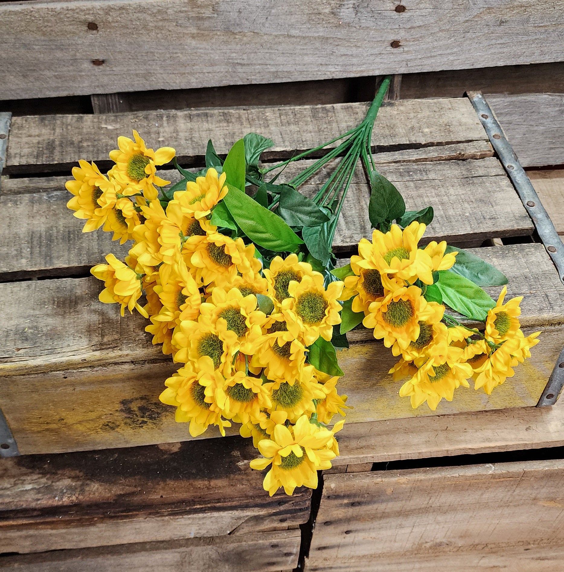 This adorable silk mini sunflower bush is great for using in wreaths, arrangements or just filling vase.
